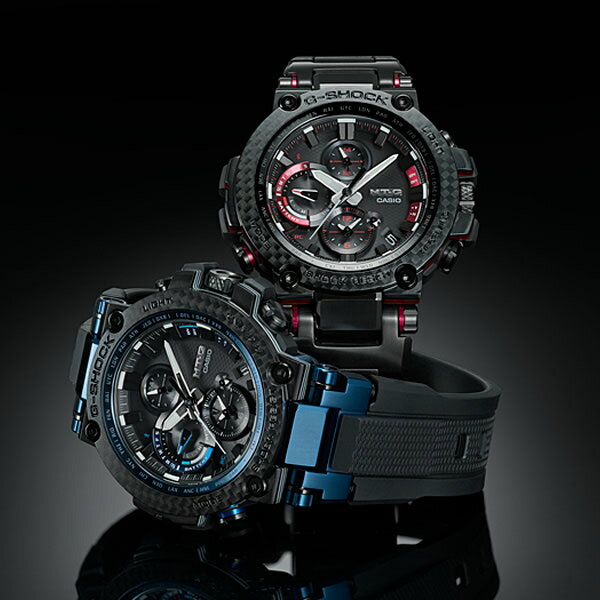 メタルと樹脂を融合した耐衝撃ボディにスマートフォンリンク機能や電波ソーラーを搭載したMTG-B1000から、カーボン素材を纏ったNewモデルが登場。