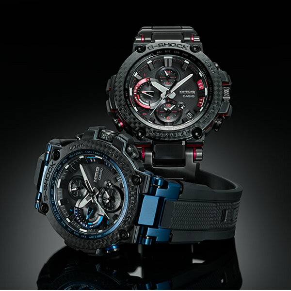 メタルと樹脂を融合した耐衝撃ボディにスマートフォンリンク機能や電波ソーラーを搭載したMTG-B1000から、カーボン素材を纏ったNewモデルが登場。