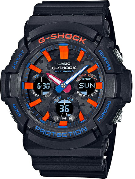 力強いビッグケースが特徴のGAW-100CTは文字板にモノクロのカモフラージュパターンを配置しデザインをまとめました。